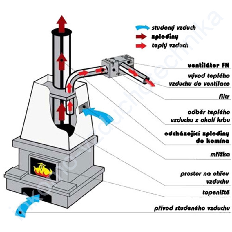 Krbový ventilátor Ø 150 mm slouží k rozvedení teplého vzduchu z topeniště od krbu nebo krbových kamen do více místností. Je vybavený tepelně a akusticky izolovaným ventilátorem vhánějícím vzduch a termostatem. Ventilátor můžete nainstalovat v jakékoliv poloze, ale ve směru proudění vzduchu.