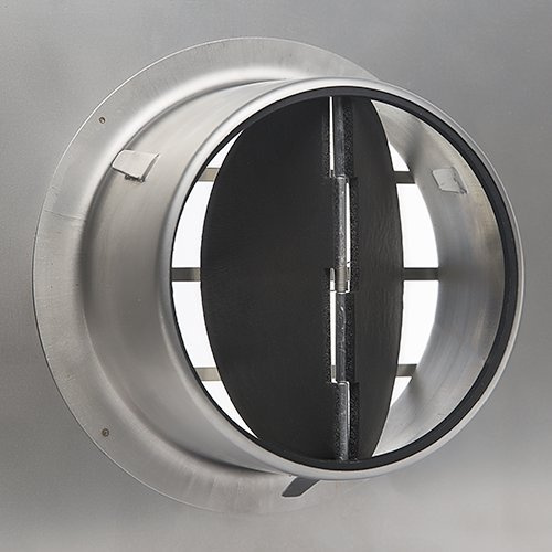 Čtyřhranná deska mřížky je osazena dvěma žaluziemi, okapničkou a sekundární izolovanou motýlovou klapkou v kruhovém hrdle ve zdi. Tato kombinace zpětných klapek a izolace zaručí vysokou těsnost vzduchovodu i snížení tepelných ztrát po automatickém uzavření klapky. Přetlaková klapka s moderním designem je vyrobena z nerezové oceli lakovaná v černé barvě (RAL 7021).
