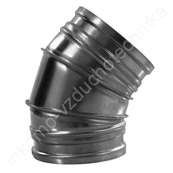 oblouk, koleno, pozink, vzduchotechnické koleno, oblouk lisovaný, oblouk segmentový, plechový oblouk, větrání, vzduchotechnika, 45° Více informací