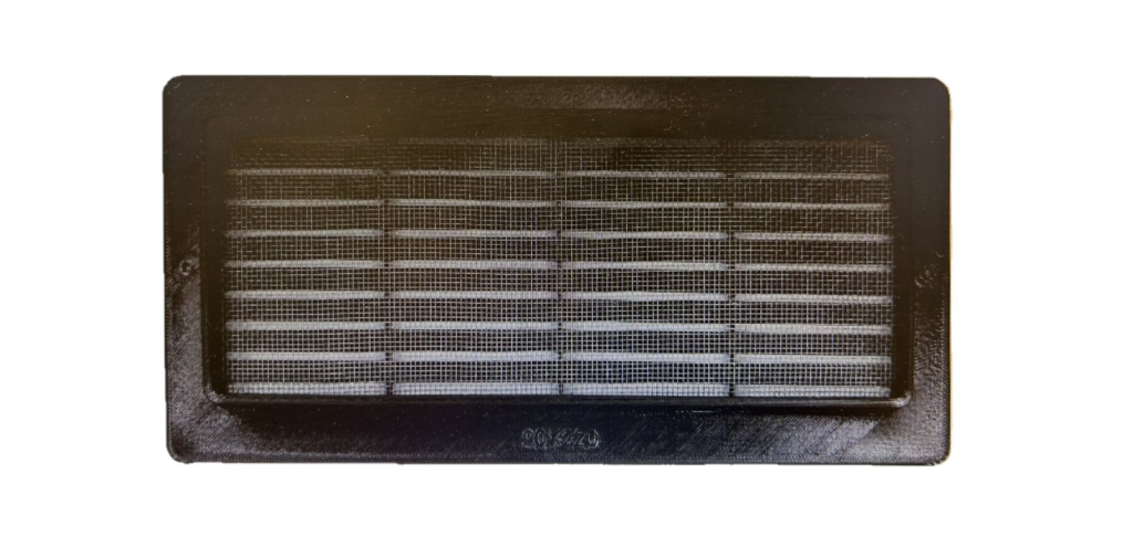 Mřížka je speciálně navržena pro zasunutí do potrubí, je opatřena síťkou proti hmyzu a má protidešťové žaluzie.