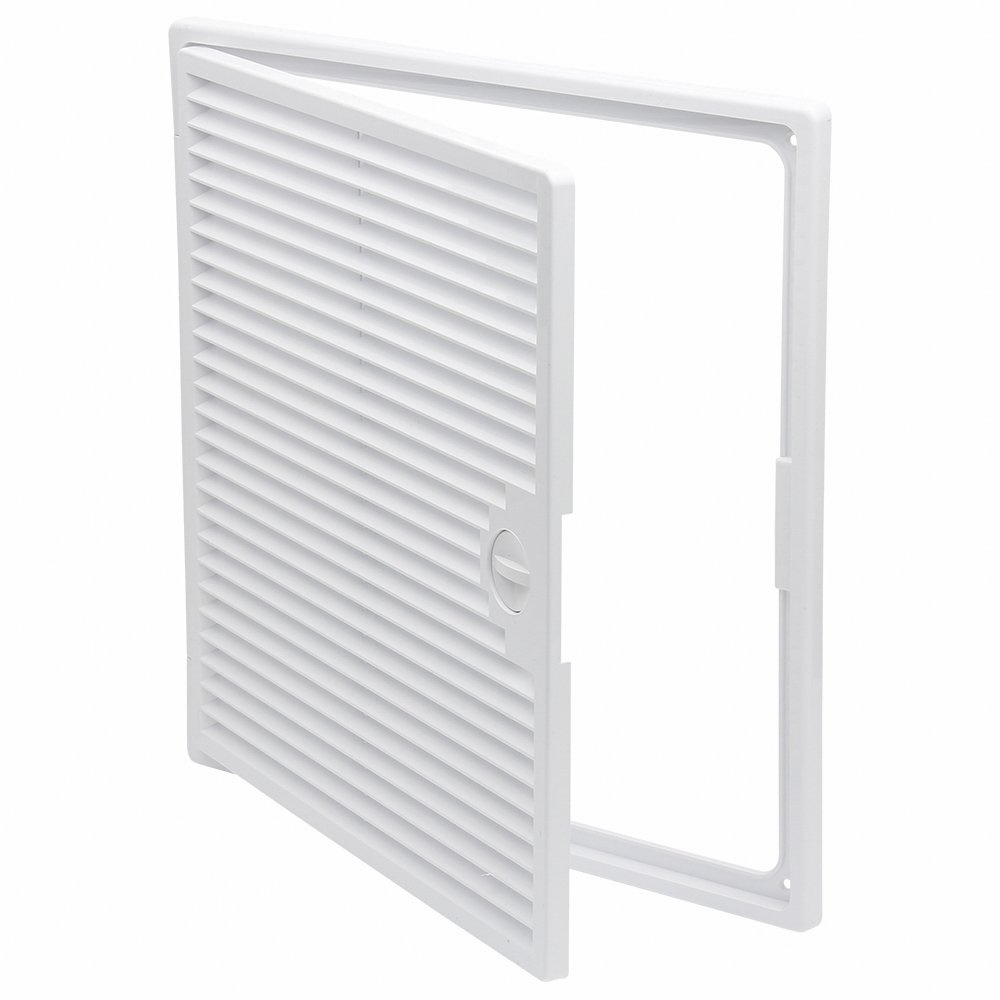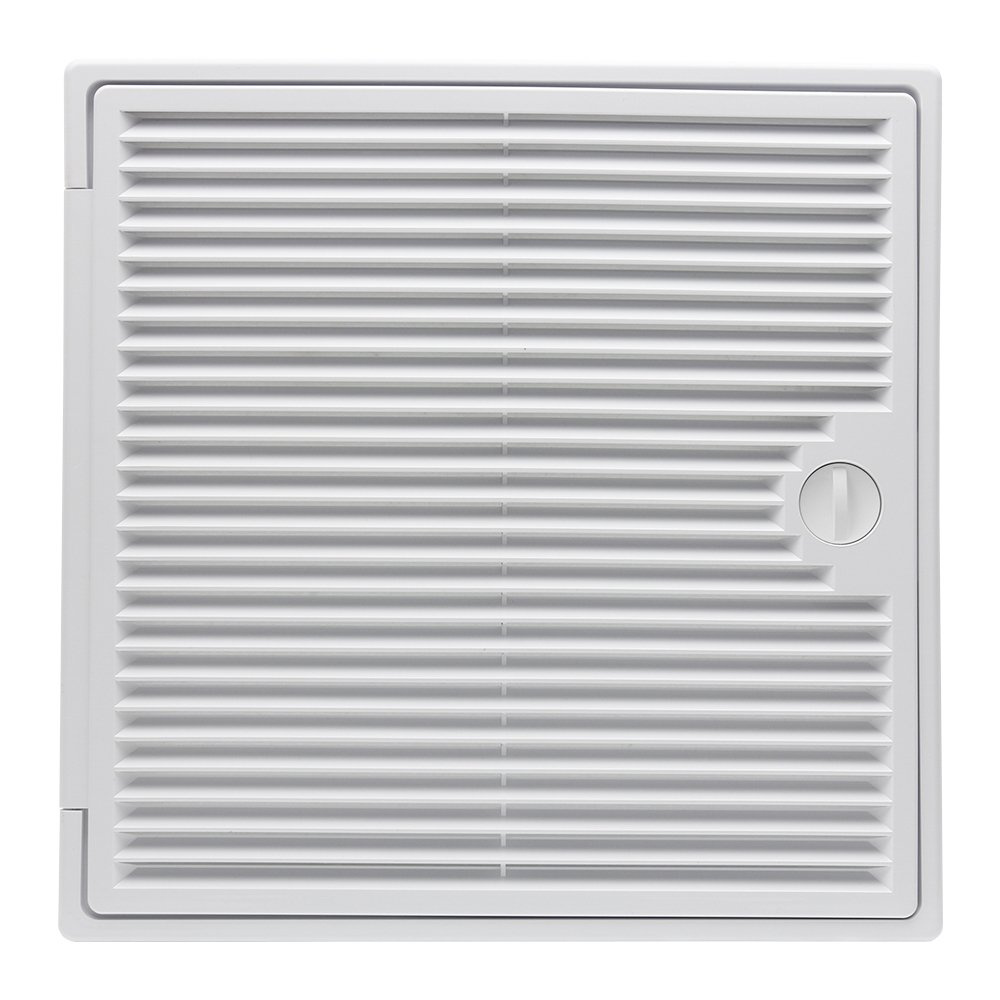 Plastová revizní dvířka v bílém provedení s větrací mřížkou o rozměru 300x300 mm jsou určena pro montáž na stěnu, do obkladu a do stropu.