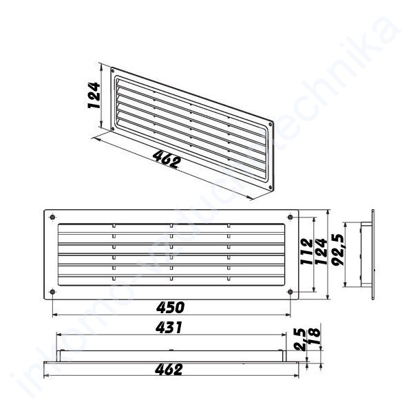 Plastová mřížka GP 450. Tato mřížka je vyrobena z kvalitního ABS plastu v bílé barvě, který je odolný vůči UV záření. Mřížka se hodí k větrání z bytů či průmyslových objektů jako jsou kuchyně, koupelny, šatny, kanceláře, WC… Více informací